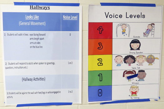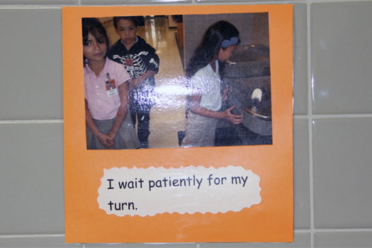 Take a moment to focus on how you want the cafeteria to run. Involve cafeteria staff in this discussion. Write out a list of the behaviors necessary to fulfill your mental image of what you want cafeteria behavior to look like. Use clear language, positive terms and specific behaviors. If “throwing your garbage in the trash can,” “making room for friends” and “standing in your own space in line with hands at your sides” are behaviors you want to see more of, then you would include them in your list. Illustrate or take photos of the behaviors and place them on the Ways To Be Helpful Board. Additional information about Ways To Be Helpful can be found in the Creating the School Family and The NEW Conscious Discipline Expanded & Updated books.