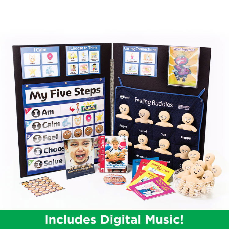 These tools will help you transform behavior problems into academic achievement. Start using the innovative 188-page English/Spanish Feeling Buddies Curriculum, digital content, Safe Place posters and more today for a more peaceful and productive tomorrow.